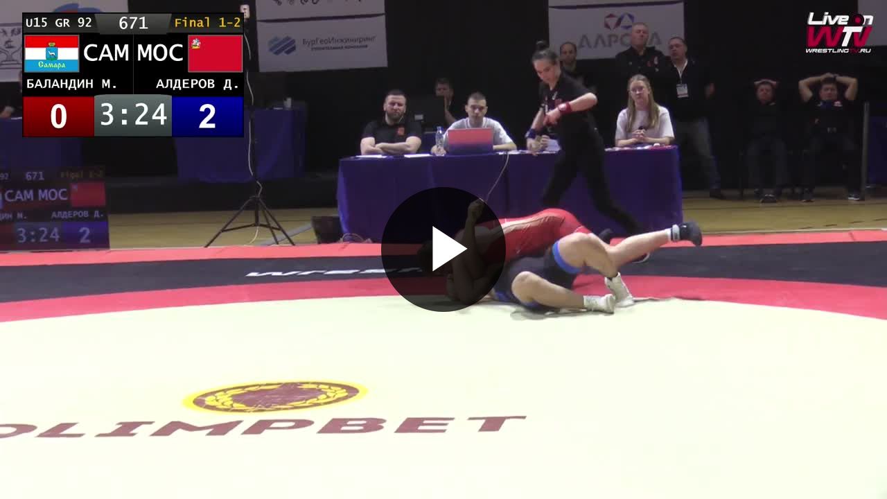 ПР-2026 по ГРБ U-15. До 92 кг. Финал. Матвей Баландин (Самарская область) — Давид Алдеров (Московска...